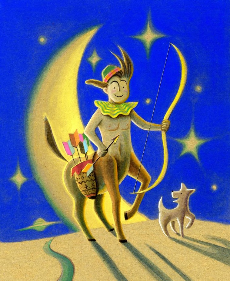 三日月の帆をたてて、少年と仔犬の星空の旅が始まります。