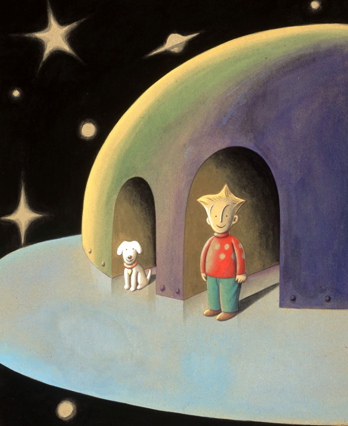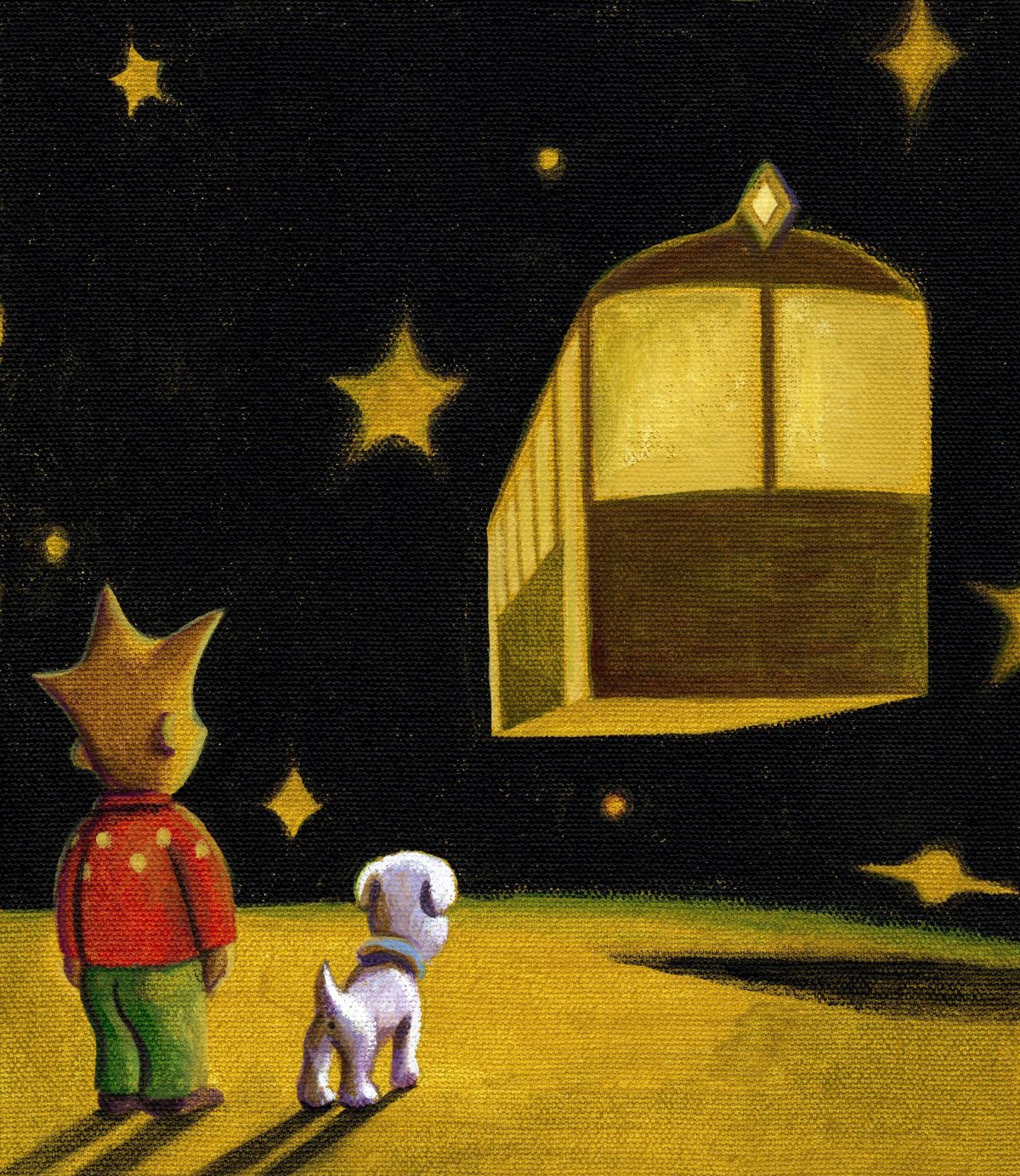 知らない惑星を訪れたミクとムー。満天の美しい星空の下、静かな街を二人は何かに誘われるようにさまよい、最後に本当の友だちと出会います。大胆な構図と鮮やかな色彩で描かれた、どこか懐かしさを感じる、伊藤正道の世界をお楽しみください